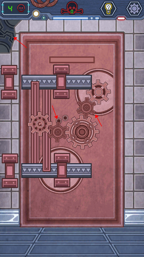 第4关:点击左上角拿到隐藏的齿轮,将三个齿轮合理组装即可。(两小夹一大)
