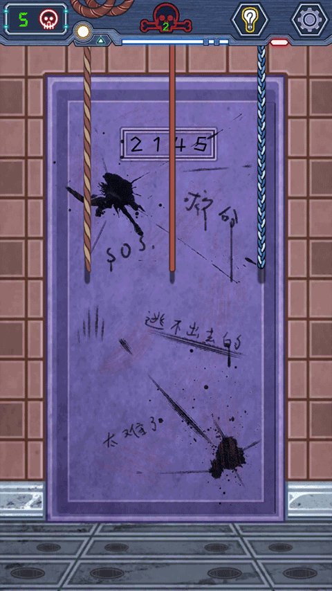 第41关:拉右边绳索开灯,将上方红按钮移到左二处,再关灯,观察上方灯亮起的节奏与顺序(自行把握),顺序对了节奏不对是没用的。