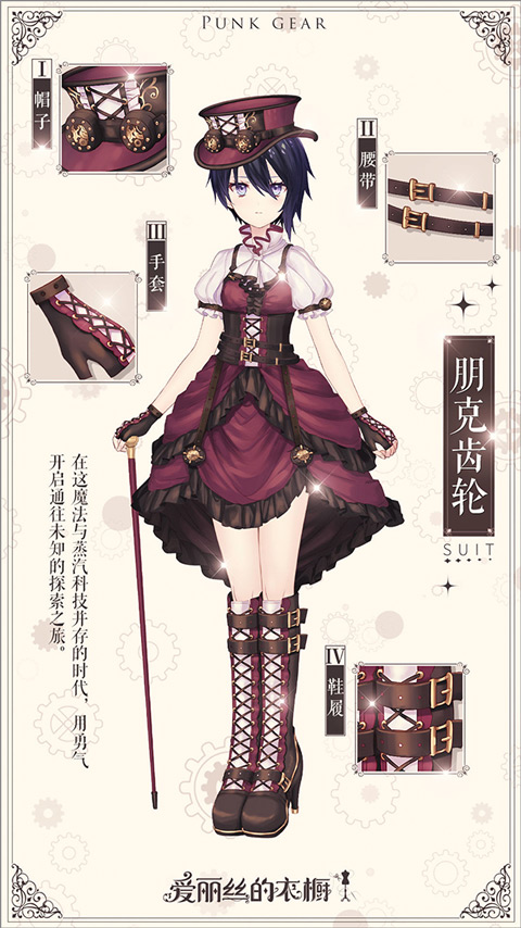 经典元素的特别碰撞,皮革、腰封、繁复的裙摆,以及更为具象的代表元素齿轮,这一套就是大家口中常说的蒸朋lolita。