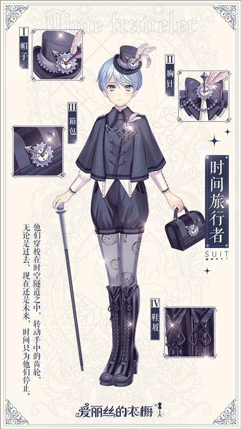 另外,白兔先生也是非常常见的王子装选择的特色:礼帽,时钟,小箱包。在这里顺便说一句,王子装也是女孩子可以穿的衣服,特点是燕尾服跟灯笼裤。