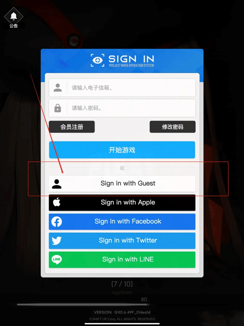3、回到第一步,选择游客身份登录游戏,直到出现满意的账号为止,然后进游戏内选择绑定邮箱即可。