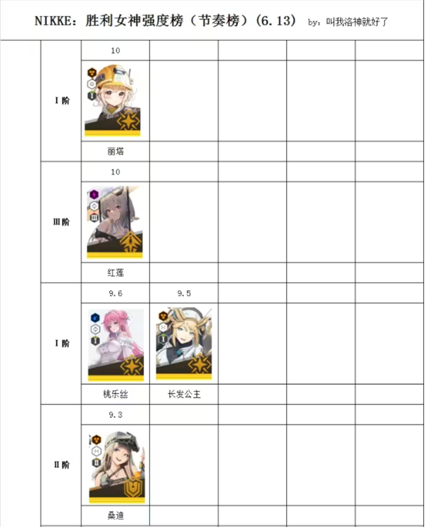爆裂1的妮姬,都可以替换上面提到的队伍里相应爆裂数的妮姬(结合武器综合考虑)。长发公主也可以上,因为我没有抽到所以图里没有。因为CD较长,梅里和长发最好都再配一个爆裂1的妮姬。