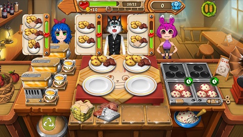 同时,在咔嗞饼干游戏中化身为顶级厨师的你,将通过熟练的手法,制作出更多的美食以供食客品味,在优先的营业时间内,安排顾客用餐,千万要记住不要让顾客等的太久,或许你可以通过升级厨房厨具,解决制作时间的问题,再则增加店铺的装饰来换取顾客的更长等待啥时间,总之,在这款游戏中,玩家需利用运用时间,并不断的升级来让小店经营蒸蒸日上。