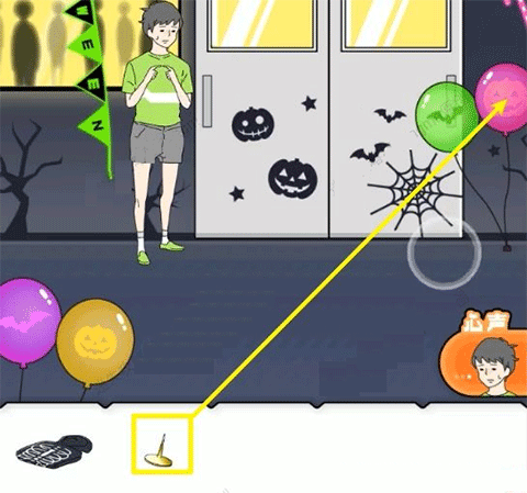 2、使用【图钉】将最右边的气球刺破,获得【南瓜面具】。