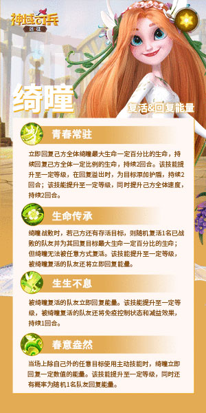 阵容特点:较完备职业复活免死队,奥古斯特、奥拉夫承担伤害,绮瞳、米迦勒复活队友,梅丽尔主输出,这是一支有顽强生命力能站稳战场的队伍
