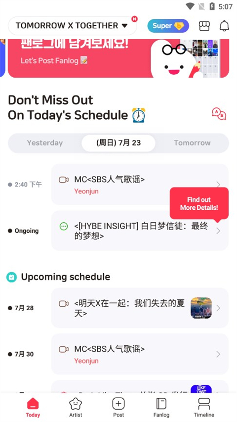 2、官方日程,包括广播演出和音乐会票务,甚至包括生日咖啡馆等非官方日程。