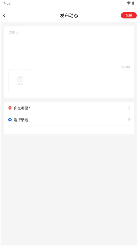 3、发布动态的主要内容,上传相应照片,选择话题之后点击右上角的发布按钮即可发帖成功。