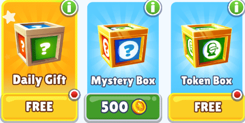 宝箱(Mystery Box)可在游戏过程中获得或在商店中购买,打开宝箱可获得游戏币、单次使用的道具、奖牌、人物等。