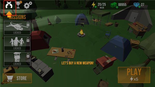 1、首先打开僵尸启示录游戏,点击左上角枪支图标;