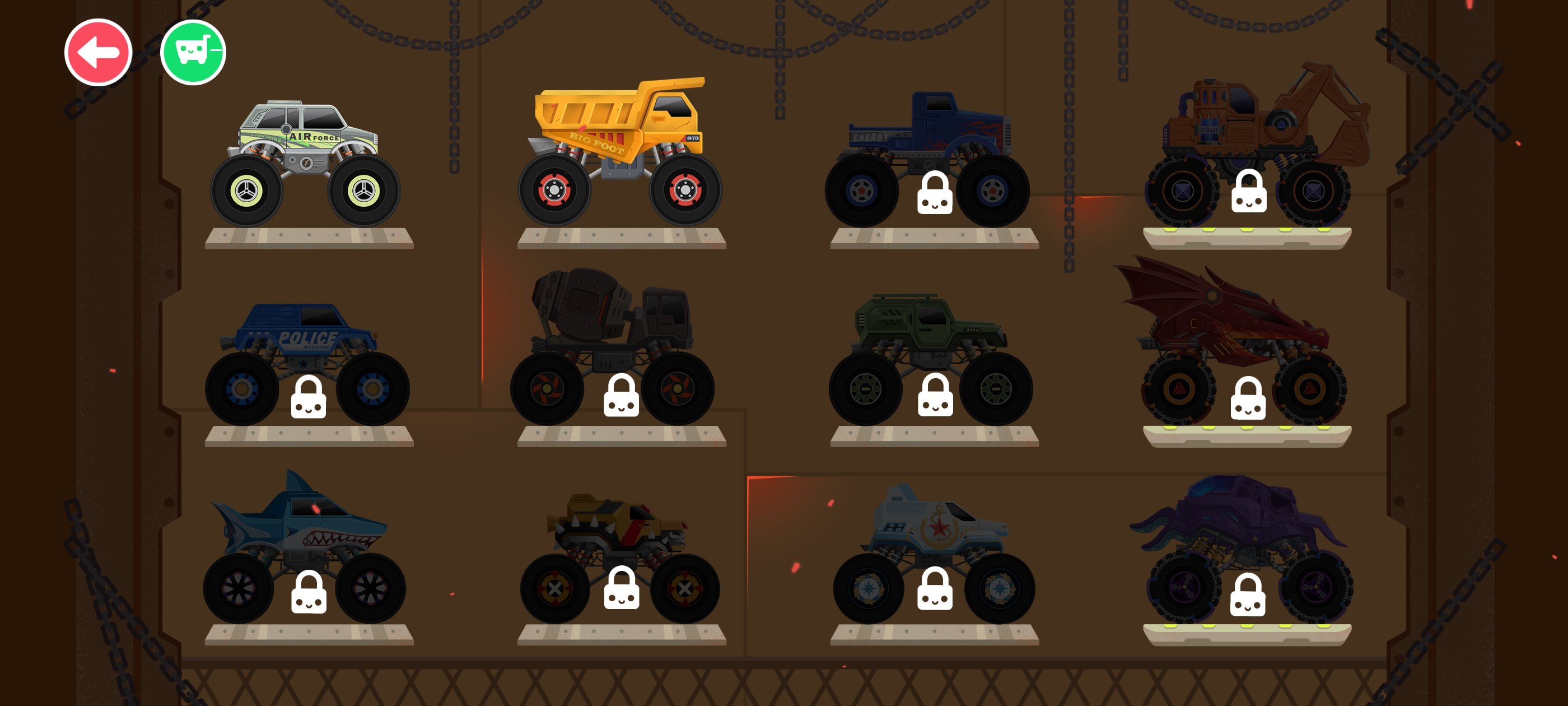 大脚车总动员2官方版是由 Yateland 设计的一款赛车竞速类手游,该游戏主要的面向目标人群为2-8岁的儿童,在这里你可以驾驶炫酷的大型卡车来完成多人竞速体验!超12款车型的丰富选择,10余种不同地图的地形探索,不仅有雪景、沙漠,城市干道,还是火山、美国西部,宇宙空间站等等,配合简单的操作控制,使得玩家更容易上手。