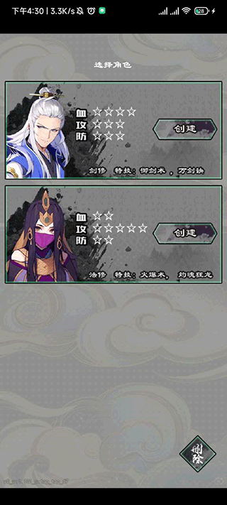 1、进游戏,选角色,法修和剑修差不多,一个是法师装备,一个是战士装备,技能不同,后期没大差别,看个人喜好
