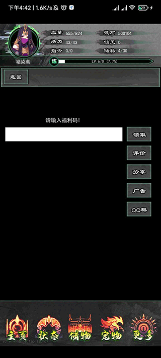 2、进游戏后去taptap里找福利码,200仙玉,点签到,广告目前有点问题,大部分不能看