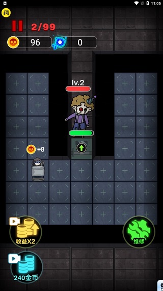 1、来躺平呀游戏没有战争迷雾,可以随时看到鬼的动向,你也可以选择完全不升级炮塔,走究极贪比的路线,但在鬼有接近你大门的意图前,一定要及时升级炮塔。