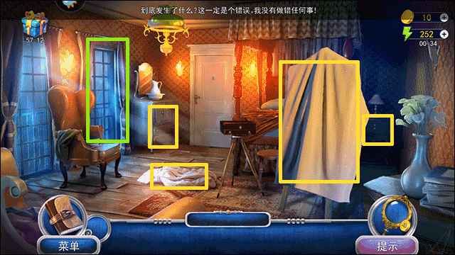 7、与场景互动,找到床单、钥匙、项链、五角星等道具后和绿色方框内的区域进行互动即可成功逃离;