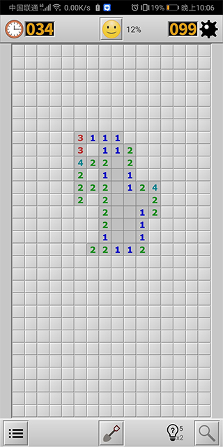 1、扫雷经典版专门为触屏手机进行操控优化,进入游戏后点击下方中间的图标切换模式,铲子的图标是挖掘模式,点击后切换旗子图标是标记模式。