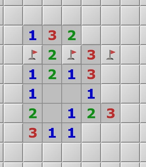 点击数字:在数字和周围八个格子中标记的雷数相等时,会点开其它格子。