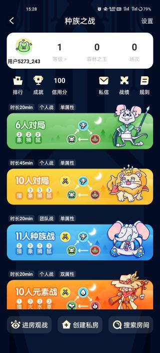 在森林派对中,用户可以通过参与游戏结交不同的好友,还能加入森友会,找到更多一起玩耍的伙伴。游戏提供了6-10人对局,11人种族战以及10人元素战等多种模式供用户选择。其技能丰富且联动性强,玩家需要凭借自身的博弈、推理能力和口才,精心运营以积累血量优势,最终赢得胜利,成为森林之王。