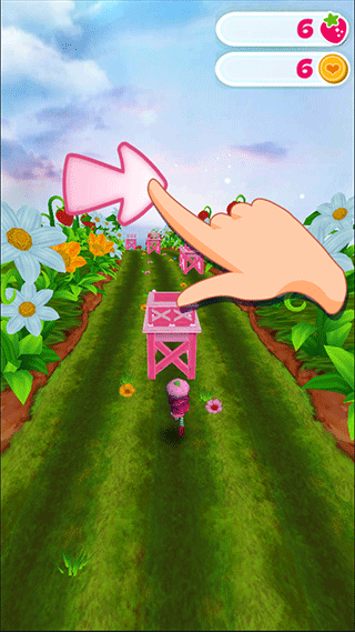 2、游戏中我们通过左右滑动屏幕来控制人物移动,上下滑动来控制她们跳跃和下滑,这是最早也是最常见的跑酷操作,相信玩家们都可以直接上手;