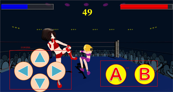 2、格斗的过程中,玩家可以使用左边的按钮进行移动,点击右边的按钮进行攻击;