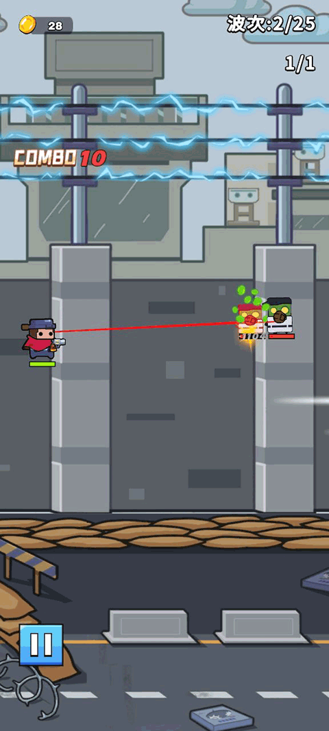在吨吨吨英雄的游戏过程中我们会遇见很多的敌方这个时候我们点击屏幕一下我们的角色就会进行一次跳跃,顺带开出一枪,子弹会往前方飞行,我们需要做的就是通过子弹击杀掉敌方,击退完敌人我们就胜利了。