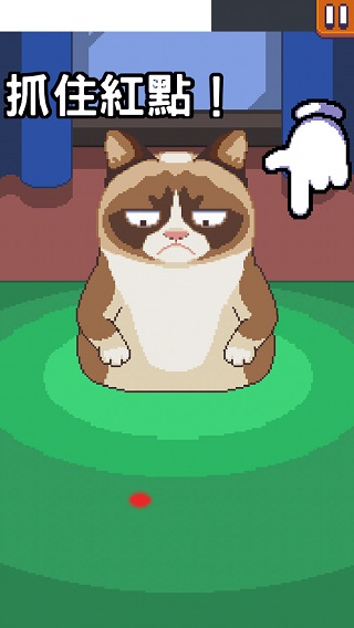 3、不爽猫要抓到屏幕上的红点,看准红点的移动位置点击红点就可以了。