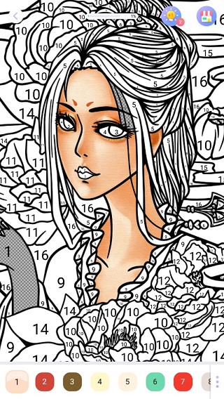 6、使用教程:依据调色盘的数字用手指进行涂色,还有便利的涂色工具定位细小色块,涂完一个色号后调色盘会显示已涂色完成,一副杰作就这样诞生啦!
