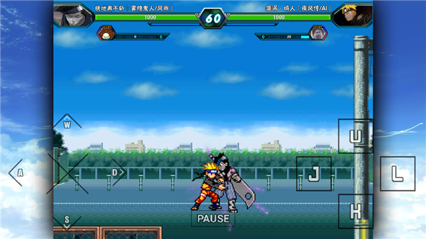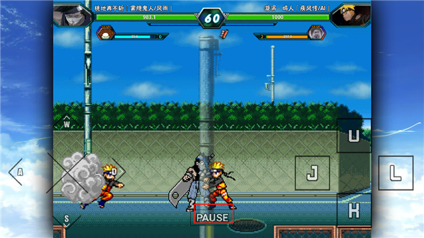 5、开启1v1对决,左边方位键,右边功能键,玩家可以根据战况自由操控角色动作;