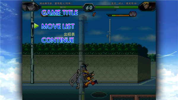 7、玩家可以退出游戏、出招表、继续等功能,我们点击出招表;