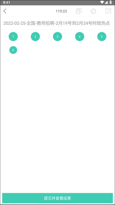 5、接着在做完题目后找到并点击“提交并查看结果”选项;
