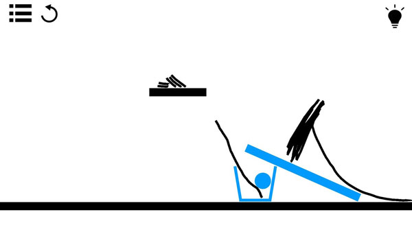 先画长线,长线连地,上端靠着蓝球,右端搭住蓝桶