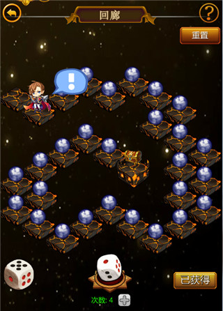 回廊是产出圣殿提升材料的玩法,主要通过摇塞子移动角色,拾取材料,还有概率遭遇特殊事件,如果亲的运气足够的好,奖励那是杠杠的。