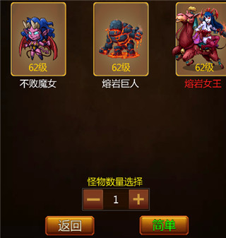 探险分为多个章节,每个章节中有多只怪物可以挑战。可选择一次挑战怪物的数量及难度,分为简单、困难、噩梦三个级别,难度越大,挑战成功获得的收益越高。