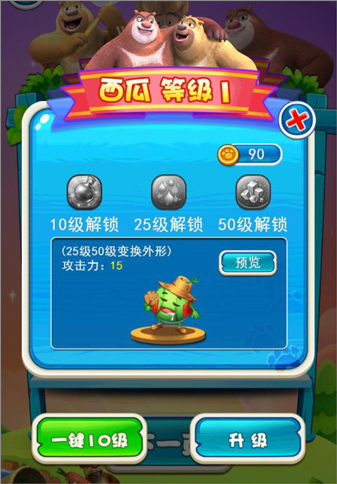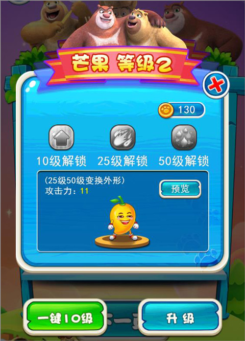 2、游戏中玩家可以选择伙伴出战,和熊大熊二一起闯关击败敌人;
