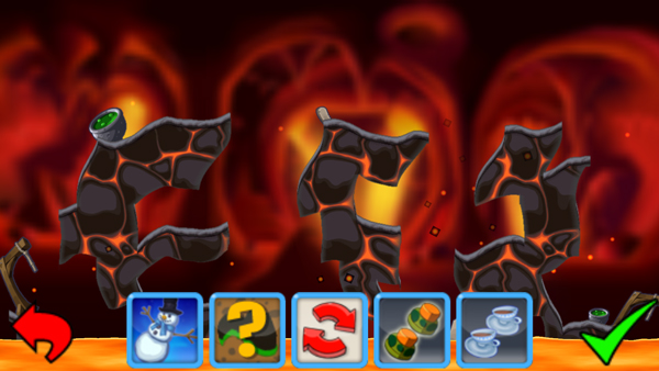 3、攻击方式有趣,选择你想使用的武器,调整好发射武器的角度,选择适当的力度,把武器狠狠地朝敌对虫子的身上扔去。