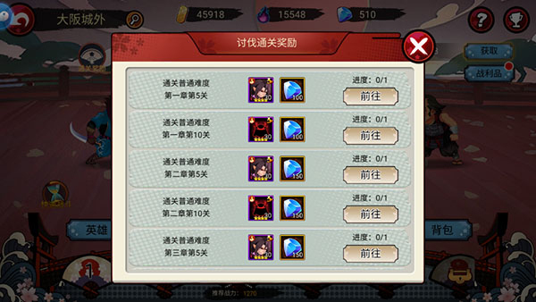 【讨伐通关奖励】通关章节越多,送的英雄就越多。