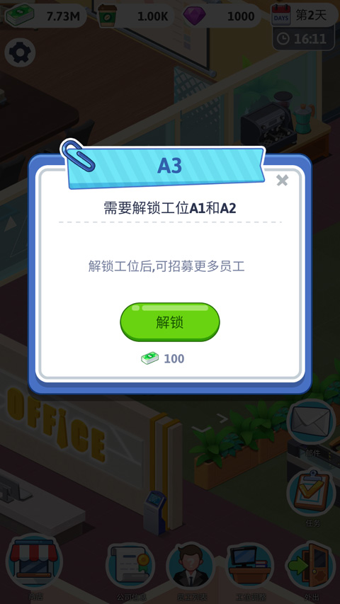 总的来说,《空闲办公室大亨中文版》是一款适合放松的休闲游戏,简单又有趣,特别适合喜欢模拟经营和策略决策的玩家。如果你对管理和办公室文化感兴趣,这款游戏绝对值得一试!