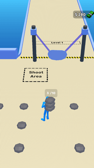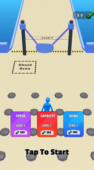 弹弓御敌是一款休闲塔防游戏,英文名是Sling Shooter,该游戏新颖有趣,全新的射击战斗模式,带给玩家不同的游戏体验,3D小人画风,游戏独特而又解压。玩家需要在游戏开始时在地面上进行拾取石块,对前来进犯的红色小人进行消灭,弹弓设置在防守线上,不能让小红人越过防守线,弹弓填充好石块后,经过蓄力可以将直线上的红色敌人进行消灭,消灭过程十分的解压有趣,并且消灭红色人会获得金钱,金钱用来升级弹弓或者蓝色小人的移动速度和石块容量,需要好好分配使用,抵御更多的敌人。
