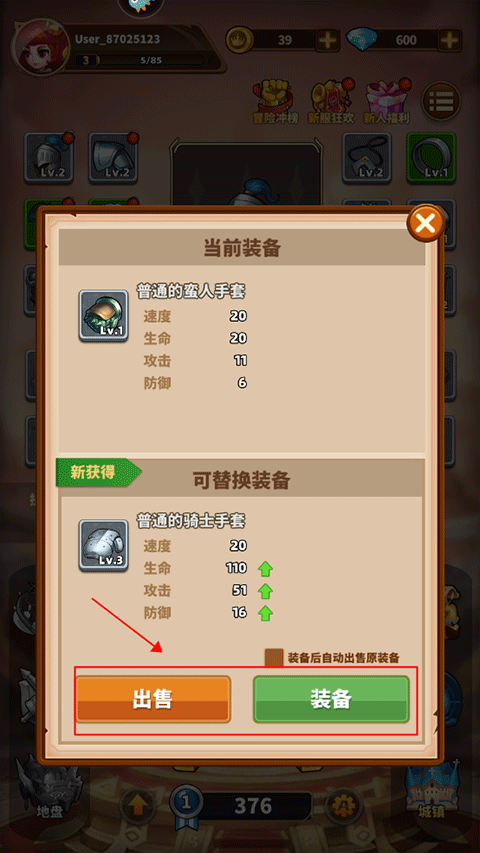 2、点击宝箱会开启很多装备,有需要的可以穿戴上,不需要的则可以出售换取金币