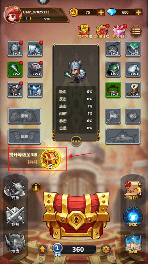 5、获得的奖励可以用来提升宝箱等级,宝箱等级越高开出珍稀装备的概率也会越高
