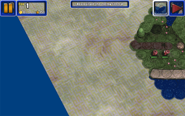2、既然是“回合制”的游戏,本作中士兵的移动是有限制的,当你发现你手下的士兵点击之后都显示红色,表示已经不能移动,这时就轮到对方行动了。