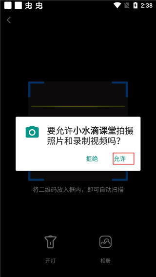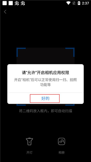 5、允许软件拍照照片等,直接扫码自己宝贝的二维码即可开始使用。