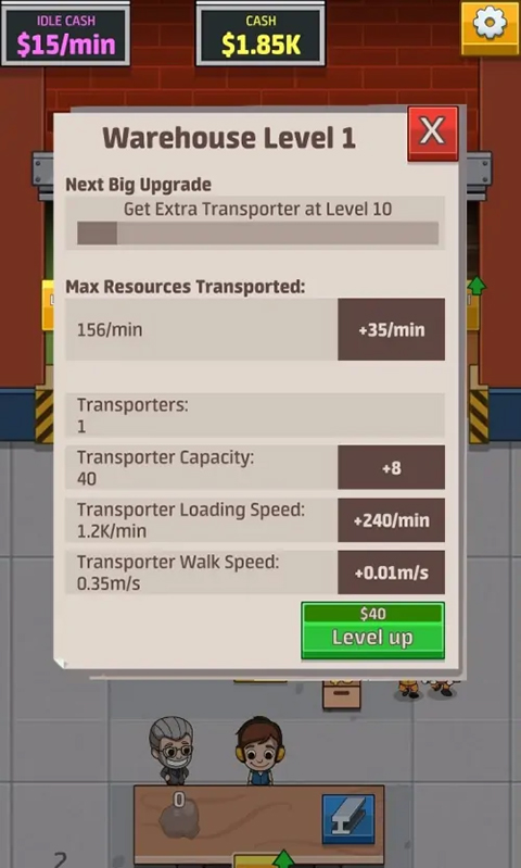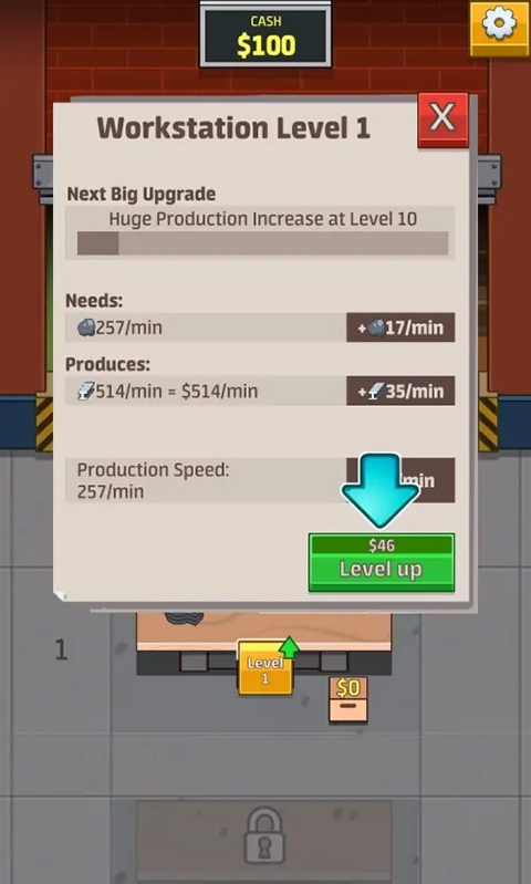 2、获得更多钱,可以去升级工作站,产量水平会大幅增长,提高生产速度。