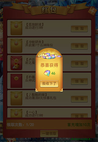 每天不限时段持续掉落红包雨,打开可获得钻石(充值货币),绑钻,养成材料等奖励。除此之外全服有玩家付费也可触发。真正的一人付费全服返利!