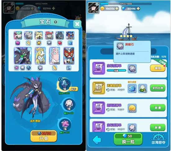 通过完成航海订单,有机会得到所有种类的宝石。宝石一共有12种,每种宝石提供一种属性加成。