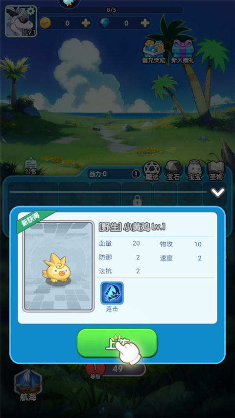 2、孵化后,点击上阵;
