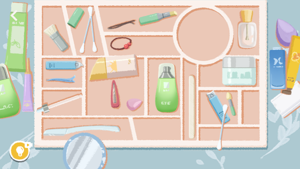 3、在这里你要将这些乱七八糟的化妆工具整理好,把他们放到相应的位置里去。
