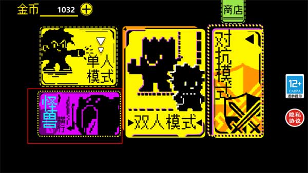 1、打开游戏之后你会发现有很多的游戏模式,包含单人、双人、怪兽以及对抗模式,以怪兽模式为例。