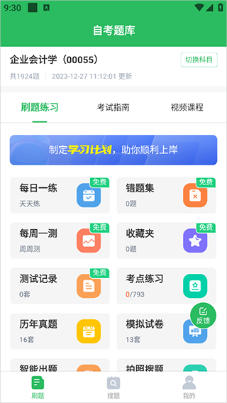4、自考题库有模拟考场、历年真题练习、每日一练、快速练习、考点练习、考试押题、做题记录等多种学习与做题模式、丰富多样化的陪你一起过自学考试。