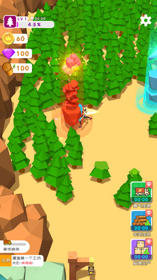 3、趣味性的画面充斥,多种元素融合,让你沉浸在砍伐树木的世界中。