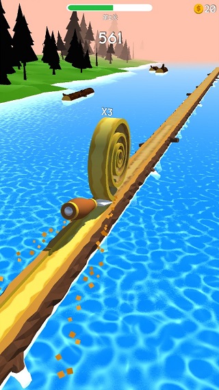 在游戏中,玩家将会化身为快乐的凿木头小木匠,拿起自己的铲子,在又窄又长的木头上前行,看到合适的时机就果断下铲,就能够削下木头的一层皮,但是也要时刻注意锯的存在,或者是其他的什么障碍物,它们会阻挠你前行的步伐,让你变得不能像以前一样快乐。